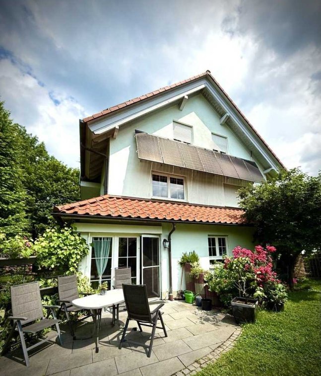 Im Ergeschoss liegt ein Büro, sowie Gästetoilette, sowie Essbereich und Einbauküche. Der Essbereich ist durch bodenhohe Fenster offen nach Westen und Süden und öffnet den Raum. Hier kann auch in den dazugehörigen Garten mit 156 qm Gartenfläche gegangen werden, welcher über ein mulitfunktionales Gartenhaus (19 qm) verfügt. Multifunktional deshalb, weil hier nicht nur Lagermöglichkeiten für Gartengeräte und Fahrräder vorhanden sind, nein es ist auch eine Partyküche, sowie eine kleine süße Weinlounge und ein angrenzendes Hochbeet vorhanden und laden für ganzjährige Aktivitäten im Garten ein.