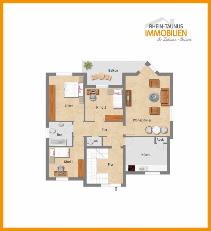 Die Wohnfläche verteilt sich auf einen Flur, über den sämtliche Räume erschlossen werden. Das großzügige Wohn- und Esszimmer mit Zugang zum überdachten Balkon – in sonniger Südwestlage – bildet das Herzstück der Wohnung. Die angrenzende Küche ist mit einer praktischen Vorratskammer ausgestattet. Zwei gut geschnittene Schlafzimmer sowie ein zusätzliches Zimmer, ideal als Kinder-, Gäste- oder Arbeitszimmer nutzbar, bieten vielseitige Nutzungsmöglichkeiten. Das Tageslichtbad ist sowohl mit einer Badewanne als auch mit einer separaten Dusche ausgestattet. Ein separates Gäste-WC erhöht zusätzlich den Wohnkomfort.