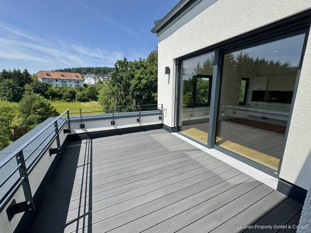 Die vermietete 3-Zimmer-Wohnung liegt im 2. OG, der "Penthouse-Etage", eines erst 2023 fertiggestellten Mehrfamilienhauses im Zentrum von Bad Kötzting.