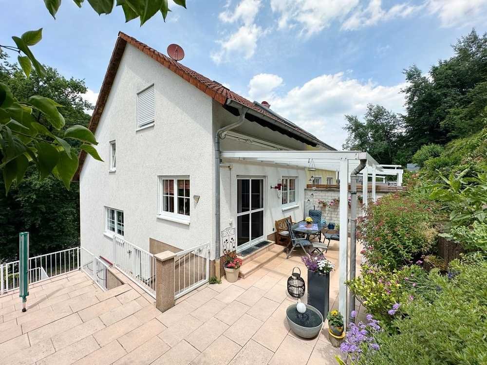 Das Grundstück in Hanglage ist ein wahres Schmuckstück – liebevoll terrassiert mit mehreren Sitzebenen und üppiger Begrünung. Die überdachte Hauptterrasse mit elektrischer Markise grenzt direkt an den Wohnbereich und lädt zu entspannten Stunden mit Blick ins Grüne ein. Eine separate Garage mit Dachterrasse ergänzt das Angebot um ein weiteres Highlight.