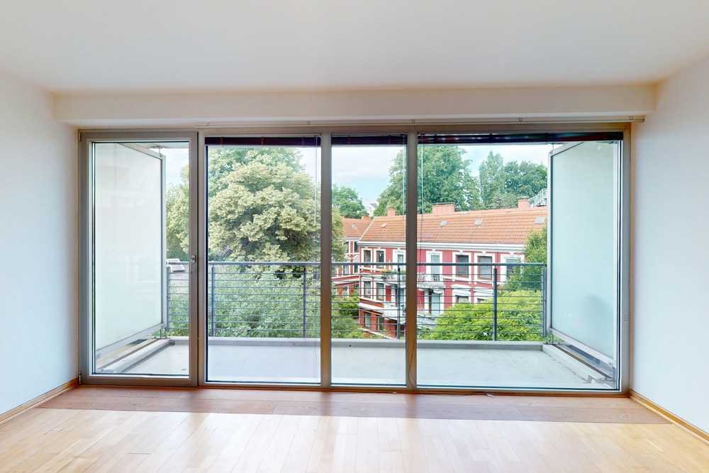 Sie befindet sich im hinteren Teil des Gebäudes und ist zum begrünten Innenhof ausgerichtet - entsprechend ruhig gelegen und vom Straßenlärm abgeschirmt. Große, bodentiefe Fenster sorgen für viel Tageslicht und eine freundliche Wohnatmosphäre. Der Wohn- und Schlafbereich ist großzügig geschnitten, mit Parkettboden ausgestattet und verfügt über einen praktischen Einbauschrank. Vom Wohnbereich aus gelangt man auf den Balkon, der einen schönen Blick ins Grüne bietet.