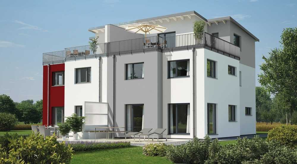 Wer die Vorteile eines Doppelhauses nutzen möchte, aber nicht auf zeitgemäße, moderne Architektur verzichten mag, für den ist dieses stilvolle Haus mit Kubus Charakter die perfekte Wahl.