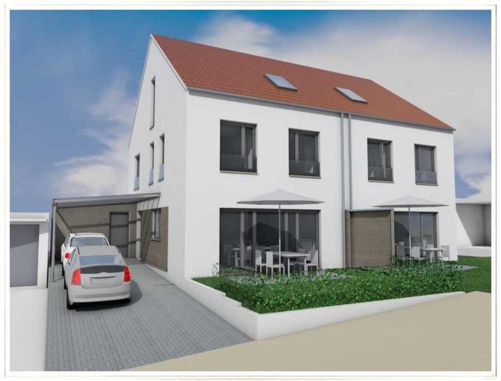 Attraktives Einfamilienhaus als westliche Hälfte eines projektierten Doppelhauses, mit einer gesamt nutzbaren Fläche von ca. 250 m², davon ca. 160 m² Wohnfläche, verteilt auf Erdgeschoss, 1.Obergeschoss, Dachgeschoss und Untergeschoss.