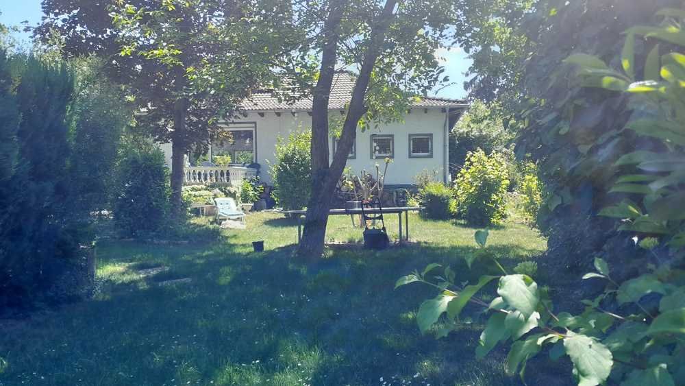 Es handelt sich um einen eingeschossigen Winkelbungalow mit vollständigem Keller.