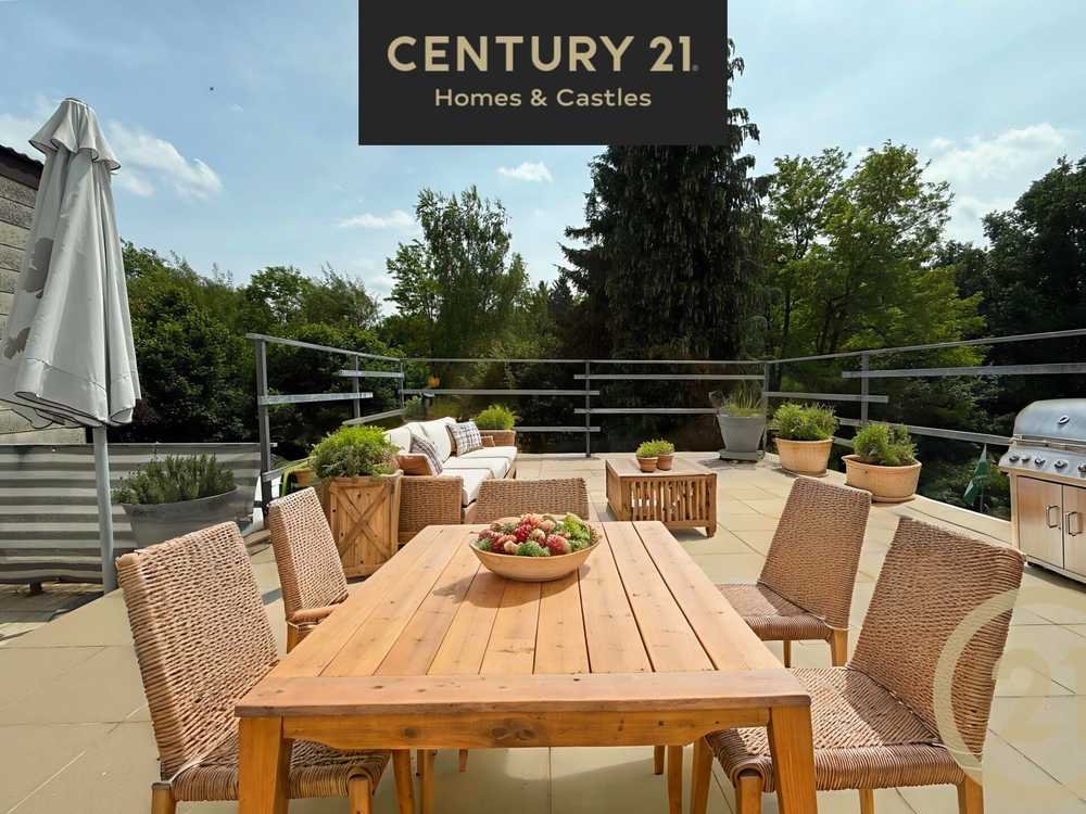 Der Garten hinterm Haus ist schön angelegt – nicht zu groß, aber genau richtig, um draußen zu sitzen, Gemüse zu ziehen oder mit den Kids zu toben. Auf der Terrasse kann man wunderbar frühstücken, ein Gläschen Wein am Abend geht natürlich auch. Und wer’s bequem mag: Der Treppenlift bleibt auf Wunsch drin. Eine Garage gibt’s obendrauf – das Auto steht also auch trocken. Anschluss für Wallbox liegt!