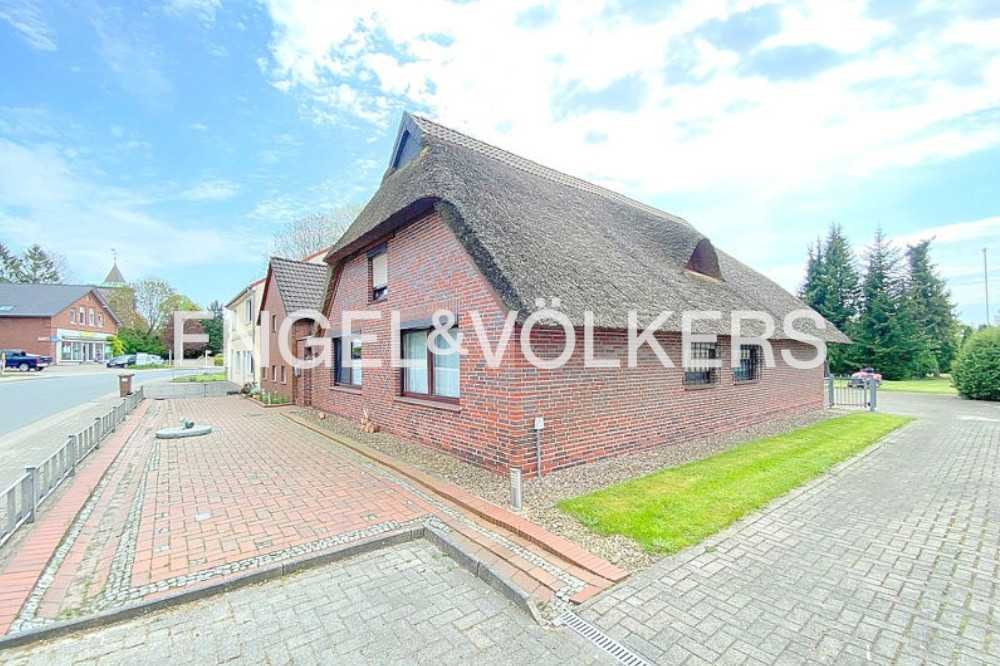 In idyllischer Lage von Stadland-Seefeld erwartet Sie dieses freistehende Reetdachhaus aus dem Jahr 1975 auf einem großzügigen Grundstück von ca. 1.694 m². Das solide Klinkerhaus bietet Ihnen viel Platz zur individuellen Gestaltung. Ca. 86 m² Wohnfläche verteilen sich im Erdgeschoss auf drei gut geschnittene Zimmer, das helle Tageslichtbad und die großzügige Küche. Im ausgebauten Obergeschoss befinden sich zwei weitere Räume. Das schöne Reetdach und die massive Klinkerfassade heben den guten und gepflegten Zustand des Hauses besonders hervor. Die doppelverglasten Kunststofffenster sorgen gemeinsam mit der im Jahr 2010 erneuerten Gasheizung für eine solide energetische Basis. Die Innenräume sind mit Fliesen- und Teppichböden ausgestattet. Die gepflegte Einbauküche sowie ein helles Wohnzimmer mit Zugang zur überdachten Terrasse bieten eine gemütliche Wohnatmosphäre. Von hier aus genießen Sie den Ausblick in den weitläufigen, liebevoll angelegten Garten, der zum Entspannen und Verweilen einlädt. Zusätzliche Nutzflächen bieten ein Nebengebäude, ein Gartenhaus, eine große Scheune sowie ein Doppelcarport. Eine Ausbaureserve ermöglicht Ihnen zudem, das Raumangebot nach Ihren Wünschen zu erweitern – etwa für ein Homeoffice, Gästezimmer oder Hobbybereich. Das Haus befindet sich insgesamt in einem gepflegten, aber teilweise modernisierungsbedürftigen Zustand. Insbesondere die Bäder, Decken, Böden und die Küche bieten Potenzial für eine zeitgemäße Erneuerung. Diese Immobilie ist ideal für Naturliebhaber, die das Besondere suchen, und bietet viel Platz für Kreativität und persönliche Entfaltung. Mit handwerklichem Geschick und etwas Liebe zum Detail kann hier ein echtes Traumdomizil im Grünen entstehen.