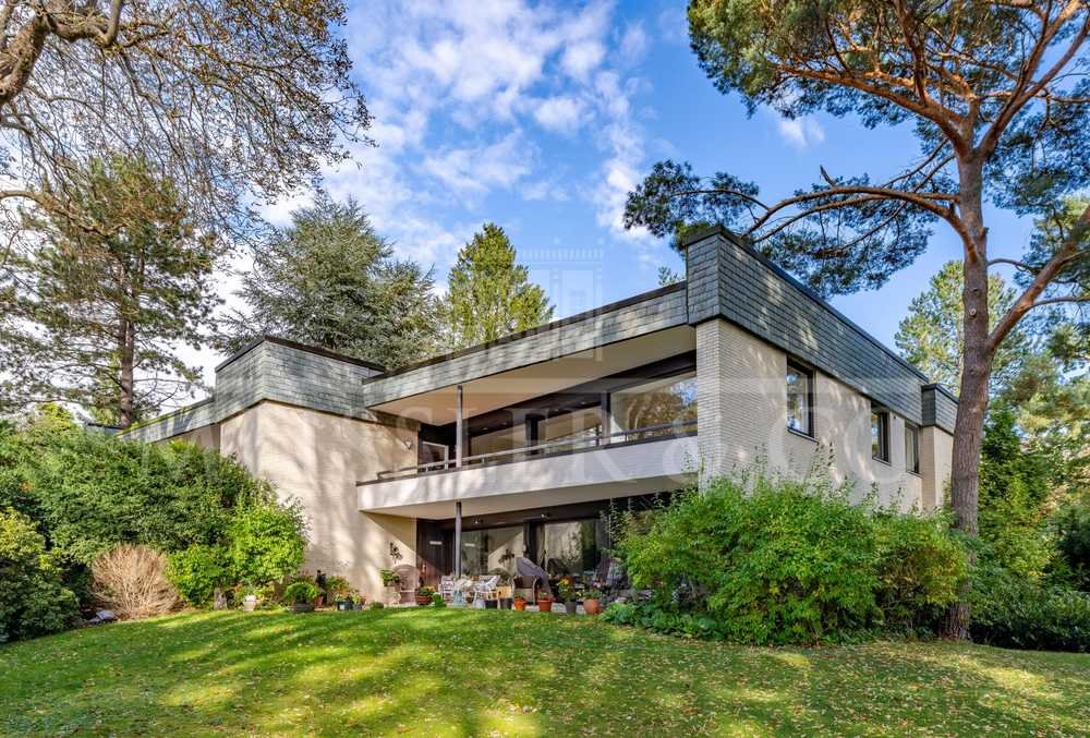 Die angebotene Wohnung befindet sich in der Endetage eines Vierfamilienhauses, das mit zwei weiteren Häusern gleichen Baustils in 1973 auf einem parkähnlich angelegten Grundstück mit einer Größe von 7.209 m² errichtet worden ist. Die große Gartenlandschaft präsentiert sich sehr gepflegt und bietet durch hohe Rhododendren und Hecken viel Privatsphäre.