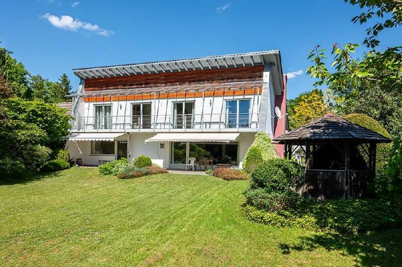 Am Ostufer des Starnberger Sees, in sehr ruhiger und idyllischer Wohnlage von Berg-Maxhöhe, liegt dieses großzügige Einfamilienhaus auf einem besonders schön eingewachsenen Grundstück von etwa 1.359 m² und bietet absolute Privatsphäre. Das freistehende Haus wurde 1973 in massiver Ziegelbauweise errichtet und überzeugt durch eine Architektur, die schon zum Bauzeitpunkt durch Individualität und gestalterische Klarheit auffiel. Die durchdachte Grundrissplanung und die markante Formensprache verleihen dem Gebäude bis heute eine zeitlose Präsenz mit hohem Wohnwert. Die Anordnung der Räumlichkeiten zueinander ist gut gelungen und mit einer Wohnfläche von ca. 224 m² findet auch eine Familie mit mehreren Kindern viel Platz zum Wohlfühlen! Die Ausrichtung nach Südwesten verspricht ganzjährig eine optimale Belichtung und vermittelt dadurch eine angenehme und helle Wohnatmosphäre. Zwei sonnige Terrassen – davon eine mit Außenkamin – mit wunderschönem Blick ins Grüne laden zum Verweilen ein. Eine Doppelgarage komplettiert das Angebot. Rundum ein Platz, an dem es sich gut leben lässt!