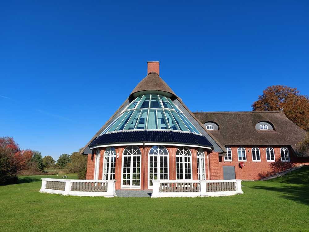 Das hochwertige Wohngebäude, eine Landhausvilla mit Reetdach, befindet sich in Dersau, eine kleine Stadt am Plöner See in Schleswig-Holstein im Norden von Deutschland. Die Region ist besonders im Sommer als Urlaubsgebiet mit grüner Natur wie Wäldern, Wiesen und Seen und einer Vielzahl an Freizeitaktivitäten beliebt.