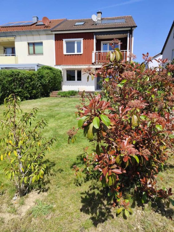 Das Haus besitzt eine große neu gefliesteTerasse mit einem großen nach Süden ausgerichteten Garten für schöne Sonnenstunden. Hinter dem Haus befindet sich ein weiterer nehezu uneinsehbares kühles Gartenstück.