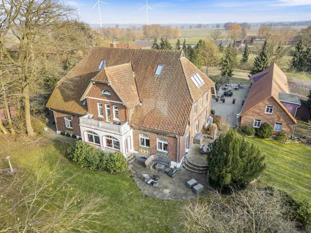 Wohnen mit Stil: Schon beim Betreten empfängt Dich eine offene Diele, die in die Wohnküche und den lichtdurchfluteten Essbereich übergeht. Das großzügige Wohnzimmer beeindruckt mit seiner Offenheit, während weit geöffnete Türen die Räume verbinden. Eine imposante Fensterfront, vier stilvolle Öfen, edles Holzparkett und 100 Jahre alte Fliesen setzen eindrucksvolle Akzente. Eine separate Wohneinheit eignet sich ideal als Gästesuite oder Büro.