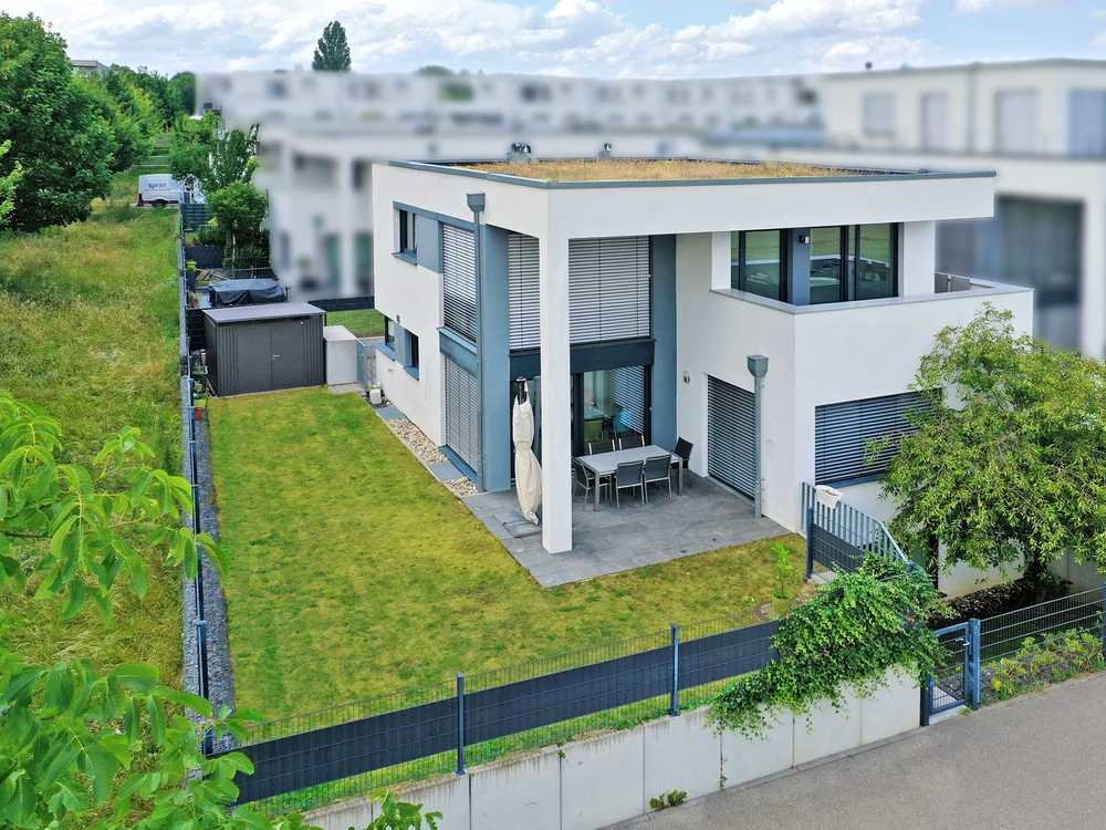 In einer absolut begehrten Toplage, direkt am Feldrand gelegen, präsentiert sich dieses charmante Einfamilienhaus, erbaut im Jahr 2012, als ein wahres Wohnerlebnis. Das Objekt vereint die Vorzüge einer idyllischen Naturkulisse mit modernem Wohnkomfort und ist ideal für Familien, die das Besondere suchen. Auf ca. 184 m² Wohnfläche, verteilt auf 5,5 großzügige Zimmer, darunter drei Schlafzimmer und zwei Bäder, entfaltet sich ein helles und offenes Raumkonzept. Die hohen Räume und großen Fensterfronten fluten das Haus mit natürlichem Licht und schaffen eine angenehm luftige Atmosphäre. Ein besonderes Highlight ist die helle Galerie, die den Wohnraum nicht nur optisch erweitert, sondern auch als inspirierender Ort genutzt werden kann. Das Haus ist mit einer effizienten Fernwärmeheizung inklusive Fußbodenheizung ausgestattet, was für behagliche Wärme in allen Räumen sorgt und die Energieeffizienzklasse C unterstreicht. Der Außenbereich begeistert mit einem sonnigen Garten, der zum Entspannen und Verweilen einlädt. Zwei überdachte Terrassen erweitern den Wohnraum ins Freie und bieten geschützte Bereiche für jede Jahreszeit. Für Ihre Fahrzeuge stehen eine Garage und ein Stellplatz zur Verfügung, was den Komfort dieses attraktiven Einfamilienhauses abrundet. Dieses Objekt in direkter Feldrandlage ist eine seltene Gelegenheit, modernes Wohnen in einer privilegierten Umgebung zu genießen.