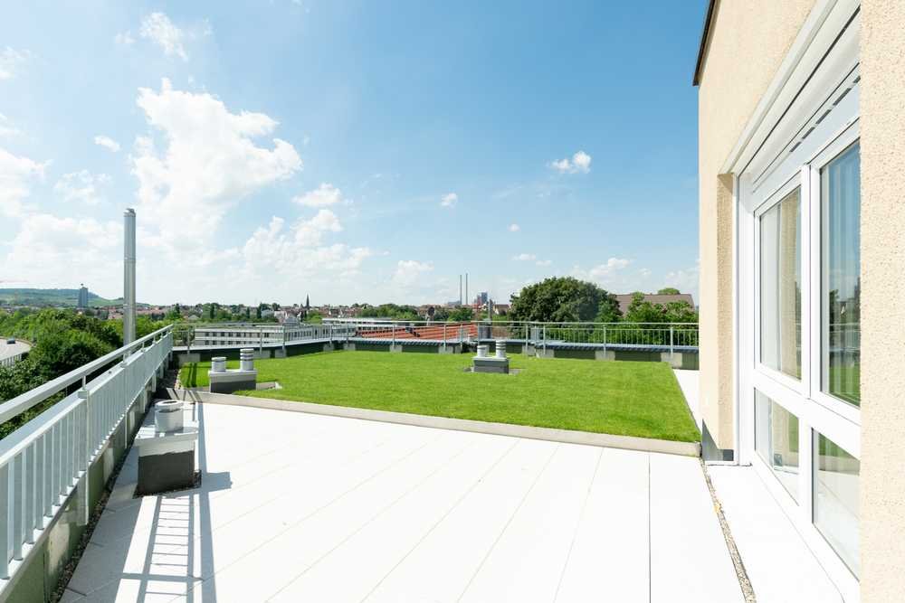 Die Wohnung bietet Ihnen ein Schlafzimmer mit begehbarer Ankleide, ein Tageslichtbad mit bodenebener Dusche und Badewanne sowie eine tolle Dachterrasse mit angrenzender Grünfläche und Aussicht, die zum Verweilen einlädt!