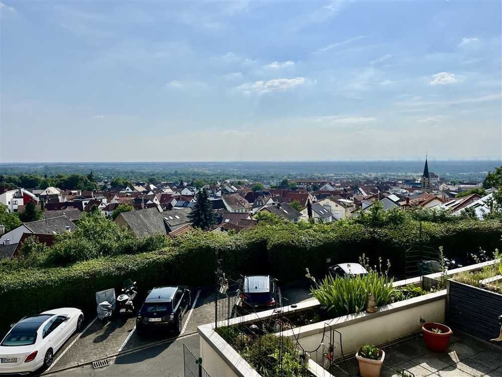 - sonniger Balkon mit Blick über die Dächer von Nußloch und in die Rheinebene