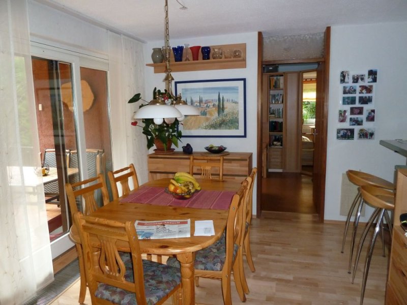 Schöne Wohnung im Hochparterre eines 6-Parteien-Hauses mit unterschiedlich großen Wohnungen; großer Garten um das Haus; sehr ruhige Lage in 2. Reihe abseits der Durchgangsstraßen, im Sommer dank Balkonüberdachung angenehm kühl, im Winter bei direkter Sonneneinstrahlung hell und warm.