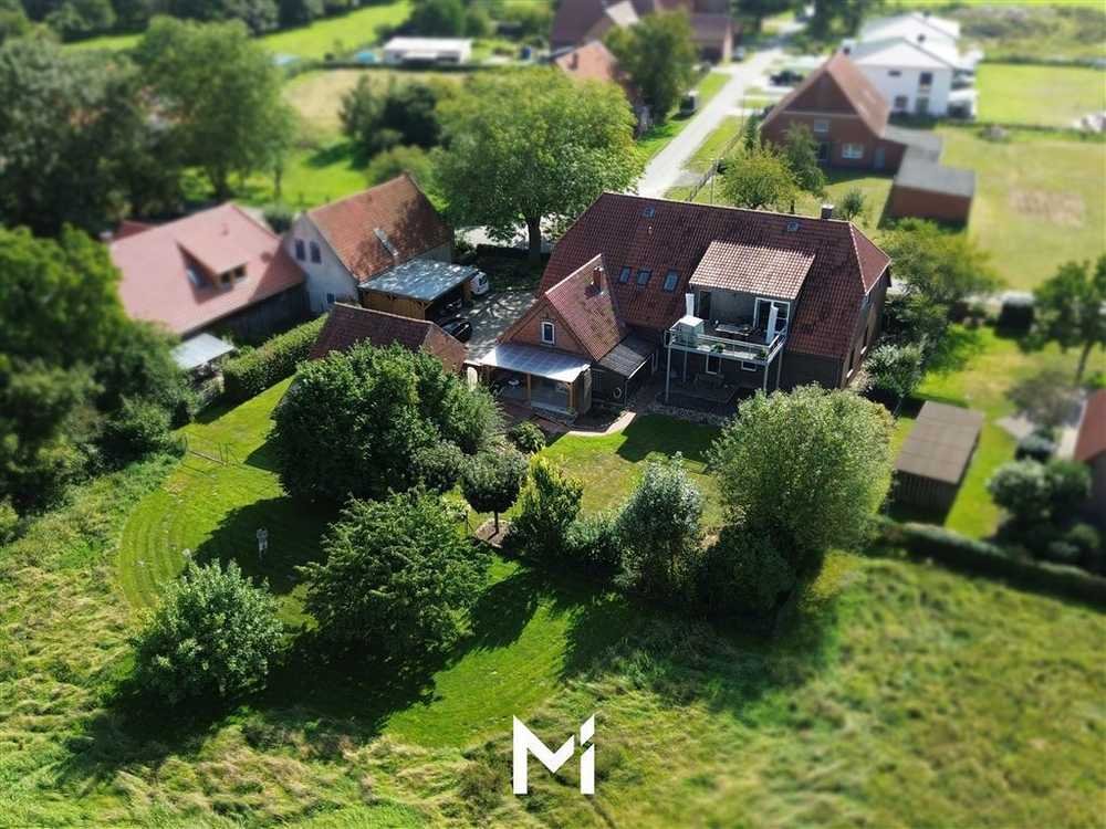 Dieses beeindruckende Bauernhaus bietet nicht nur eine großzügige Wohnfläche, sondern auch eine Vielzahl von Annehmlichkeiten und Freiflächen, die es zu einem idealen Zuhause für eine oder zwei Familien macht. In einer ruhigen Wohngegend direkt in der Natur erstreckt sich das Anwesen über eine Grundstücksfläche von ca. 11.815 m² und besteht aus zwei separaten Wohneinheiten - einer Erdgeschosswohnung und einer Dachgeschosswohnung - jeweils mit separaten Eingängen. Das Wohnhaus in massiver Bauweise und einem Krüppelwalmdach mit einer Trapezgaube zur Straße sowie einer Schleppdachgaube zum Garten bietet nicht nur sehr viel Platz, sondern ermöglicht auch das Generationswohnen. Optional könnten hier sogar drei Wohneinheiten entstehen.