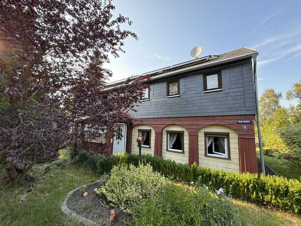Im Erdgeschoss befinden sich 2 Zimmer, Küche, Bad, sep. WC. Durch den hinteren Ausgang gelangt man direkt in den Garten. Außerdem ist der Hauswirtschaftsbereich integriert sowie ein Zugang in die Garage. Das Obergeschoss verfügt über 3 Zimmer, Küche und Bad. Einige Modernisierungen wurden durchgeführt, z. B. teilweise Austausch der Fenster, neue Bäder, Elektrik. Im Dach gibt es Undichtigkeiten, die zügig behoben werden sollten. Die Heizung wird durch eine Solarthermische Anlage unterstützt.