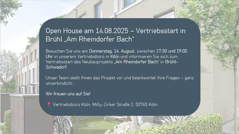 Am Rheindorfer Bach entstehen moderne Stadthäuser, die Ihrer Familie alles bieten, was Sie sich von zeitgemäßem Wohnen wünschen: großzügiger Platz zum Leben und Entfalten, durchdachte Grundrisse, eine energieeffiziente Bauweise und eine moderne Architektur mit klaren Linien.