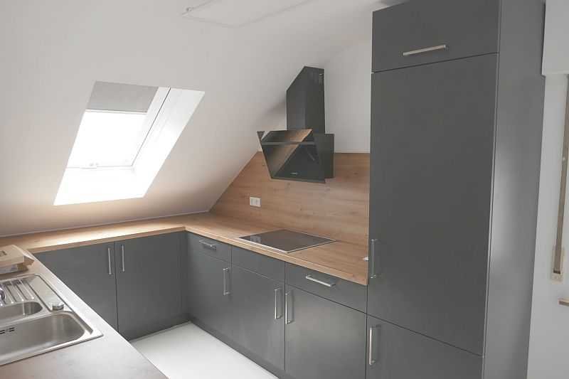 Massiv erstelltes Mehrfamilienhaus. Satteldach mit Gauben. Dachrinnen und Verwahrungen Kupfer. Die Wohnung befindet sich im Dachgeschoss. Die Wohnung wurde 2025 modernisiert, Neues Bad, Neue Innentüren mit Rundkante in weiß, Kunststofffenster weiß mit Rollladen, Dach Neu eingedeckt 2024, Dachflächenfenster Neu mit Rollo.