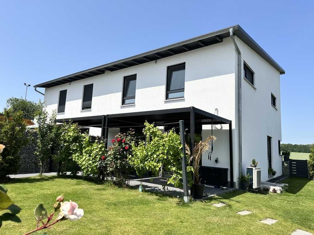 Diese neuwertige und moderne Doppelhaushälfte wurde 2020 (Erstbezug 2022) in KfW55-Bauweise errichtet und steht auf einem ca. 443 qm großen Grundstück in schöner Siedlungslage von Blaufelden. Im Erdgeschoss befindet sich der offene Wohn-/Essbereich mit angrenzender Küche, Diele/Eingangsbereich und ein Gäste-WC. Über eine elegante Holztreppe gelangt man direkt vom Wohnbereich ins Ober- sowie Kellergeschoss. Das OG ist aufgeteilt in drei Schlafzimmer und ein modernes Tageslichtbad mit bodentiefer Dusche, Badewanne und WC. Im UG befindet sich ein großes Gästezimmer bzw. Hobbyraum, die Waschküche mit zusätzlich ausgebautem Gästebad (Dusche/WC) sowie der Heizraum, der ausreichend Abstellfläche bietet.