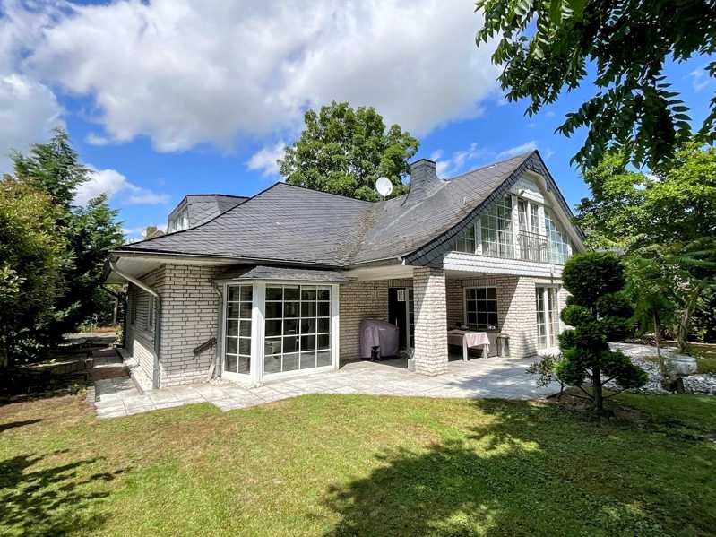 Freistehendes Einfamilienhaus mit ansprechender Architektur, 1990 massiv erbaut mit weißer Klinkerfassade, ausgebautem Satteldach (2014 renoviert), mit Schiefer- und Schwalbenschwanzgauben, Kunststoff-ISO-Fenstern mit Sprossen, Gaszentralheizung (neu 2019), mit Fußbodenheizung, Kamin, Einbauküche, zwei Bädern, großer Terrasse, zwei Balkonen, großer Garage und einem Gartenhaus in einem schön angelegten Garten in ruhiger Lage.