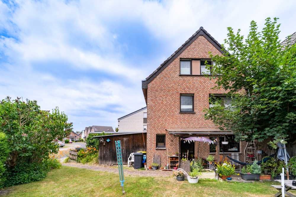 Im Erdgeschoss befinden sich ein großzügiges Wohnzimmer, eine funktionale Küche sowie ein Gäste-WC. Der Gartenbereich ist sowohl vor als auch hinter dem Haus vorhanden und bietet Platz für Freizeitaktivitäten und individuelle Gestaltung. Seitlich am Haus stehen mehrere Parkmöglichkeiten zur Verfügung.