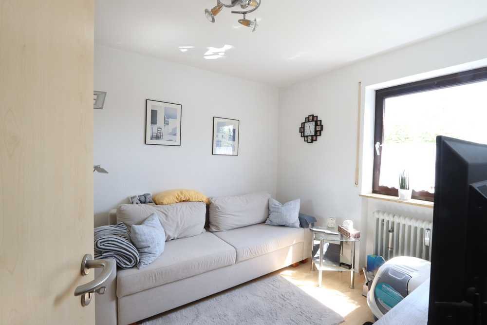 Durch einen Türbogen gelangen Sie Richtung Osten in die Schlafräume. Das links liegende Zimmer bietet sich als Kinderzimmer oder Büro an, wirkt hell und einladend.