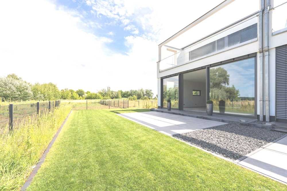 • Großflächige Aluminiumfenster mit erhöhtem Sicherheitsstandard, überhohe Innentüren mit einer Höhe von ca. 2,40 m, elektrisch steuerbare Raffstores an allen Fenstern sowie teilweise integrierte Fliegengitter unterstreichen den hohen Ausstattungsanspruch. Die offene Wohnküche mit großzügiger Verglasung schafft einen fließenden Übergang zur Terrasse und in den Garten – insgesamt laden drei Terrassen zu erholsamen Stunden im Freien ein.