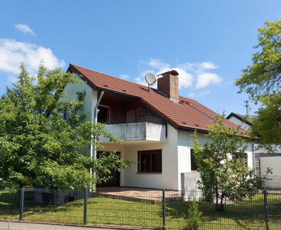 Bei der Immobilie handelt es sich um ein Einfamilienhaus mit einer separaten Einliegerwohnung mit eigenem Hauseingang. Das Gebäude hat eine gut erhaltene, gehobene Ausstattung und verfügt über eine Terrasse, einen Balkon, einen offenen Kachelofen, zwei Badezimmer sowie zwei Einbauküchen. Das Gebäude wird über eine zentrale Ölheizung beheizt. Auf dem Grundstück befinden sich eine Garage und zwei weitere Stellplätze sowie eine Gartenhütte.