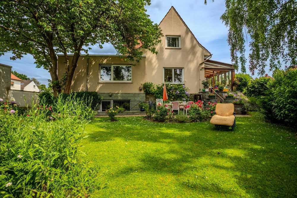 Ein nicht alltägliches Angebot in hervorragender Lage-ruhig und dennoch zentral! Doch hier besticht nicht nur die Lage, sondern auch das Objekt selber versprüht einen ganz speziellen Charme. Das Objekt wurde ursprünglich Ende der 1930 Jahre erstellt und erhielt dann in den 1950er den ersten Anbau, in dem sich heute der Eingang und das Gäste-WC befinden. Später wurde das Erdgeschoss noch um einen weiteren Raum mit Bad sowie den Wintergarten ergänzt. Das Erdgeschoss verfügt über einen schönen Wohnraum mit Erker und Kaminofen, einen Essraum mit Zugang zum Wintergarten, ein Schlafzimmer mit Bad ensuite sowie die gemütliche Wohnküche mit Balkon. Die Wohnfläche im Erdgeschoss beträgt somit nahezu 100 m². Vom Erdgeschoss gelangt man durch den Flur ins OG. Dort befinden sich drei weitere Räume (einer mit Balkon) sowie ein weiteres Bad. Das Haus ist unterkellert. Neben diversen Kellerräumen und der Waschküche befindet sich im Keller noch ein weiteres Bad/WC sowie ein großer wohnlich ausgebauter Raum von ca. 28 m² mit eigenem Zugang zum Garten. Er wird zur Zeit als Arbeitszimmer genutzt. Dieser Raum wie auch das Bad sind in der angebenden Wohnfläche nicht inkludiert. Auch der Wintergarten ist in der Wohnfläche nicht enthalten.