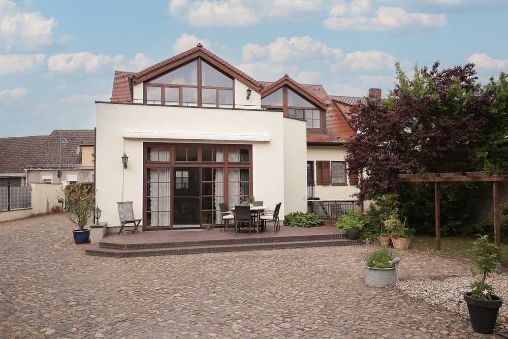 Die angrenzende Remise bietet auf 50 m2 eine eigenständige Wohneinheit mit 2 Zimmern, Küche und Bad – ideal für Gäste, Au-pair oder zur Vermietung. Im Nebengelass befinden sich ein