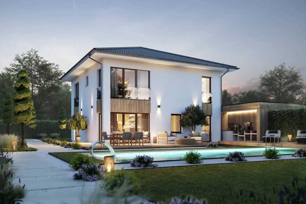 Das moderne Einfamilienhaus Signature S163 in zwei Ebenen verbindet klare Linien und helle Akzente mit natürlichen Holzelementen – ein echtes Statement für stilbewusstes Wohnen. Großzügige Panorama-Fenster fluten die Räume mit Licht und schaffen ein offenes, freundliches Ambiente, das zum Wohlfühlen und Entspannen einlädt.