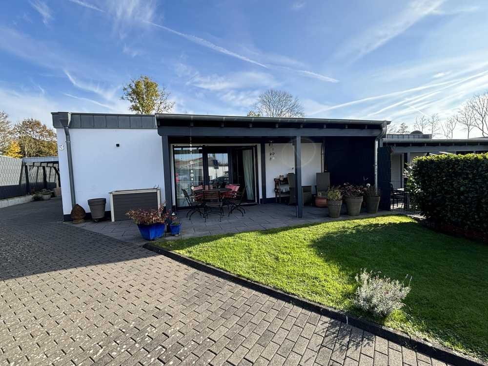 Das ebenerdige Grundstück mit ca. 588 m² verfügt eine große Einfahrt mit zwei Carports und drei Stellplätzen, sowie über eine schöne Wiesenfläche.