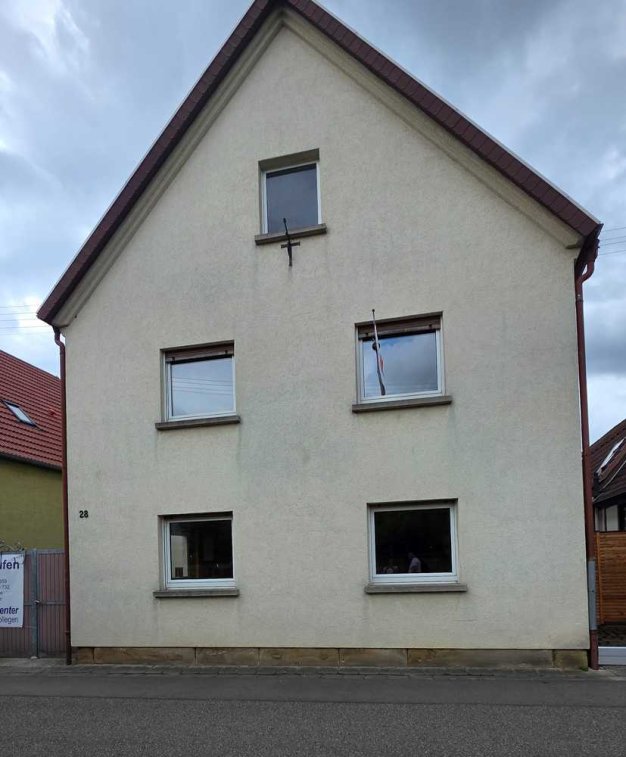Dieses Einfamilienhaus mit einer Wohnfläche von ca. 150 m² wurde im Jahr 1954 erbaut und befindet sich in einer ruhigen Wohngegend. Das zweigeschossige Haus verfügt über insgesamt 7 Zimmer, darunter 4 Schlafzimmer und ein Badezimmer. Die Massivbauweise und das Satteldach geben dem Gebäude einen traditionellen Charme. Auf dem 1057 m² großen Grundstück befinden sich außerdem zwei Parkplätze im Hof und ein Keller.