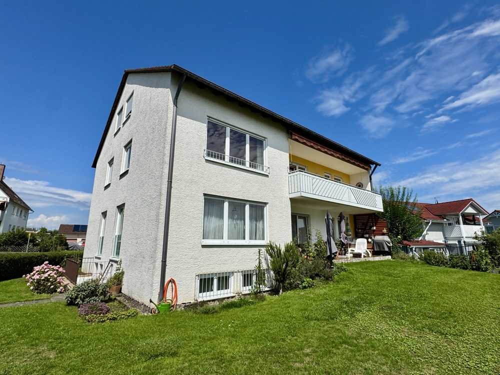 Die individuelle 3-Zimmer-Dachgeschoss-Wohnung ohne Balkon befindet sich in einem ca. 1973 erbauten, gepflegten 3-Familien-Haus auf einem ca. 747 m² großen, sonnigen Grundstück in ruhiger und doch stadtnaher Wohnlage von Friedrichshafen, im Ortsteil Wiggenhausen.