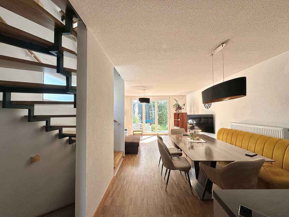 Über drei Wohnebenen erstreckt sich ein durchdachter Grundriss mit viereinhalb Zimmern, die viel Raum für individuelle Wohnideen und Lebensstile bieten. Der lichtdurchflutete Wohn- und Essbereich im Erdgeschoss bildet das Herzstück des Hauses. Eine offen gestaltete und moderne Küche, die vom Mieter erworben werden kann, schafft fließende Übergänge und ein angenehmes Wohngefühl. Im Eingangsbereich sorgen ein Gäste-WC und eine clever integrierte Garderobe für zusätzlichen Komfort.