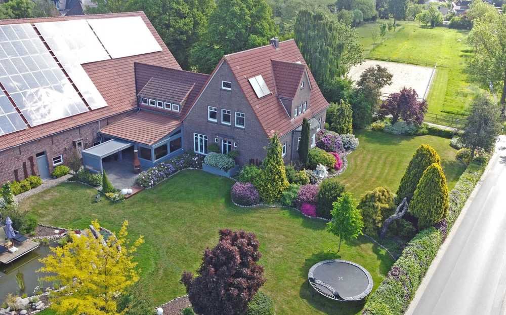 Inmitten einer traumhaft gestalteten Gartenlandschaft erschließt sich ein einmaliges Gebäude-Ensemble. Die Hofstelle ist seit mehreren Generationen in Familienbesitz und erfuhr kleinere und größere Wandlungen wie z.B. wurde im 2. Weltkrieg das Haupthaus zerstört und 1950 neu wieder aufgebaut. 1995 wurde die ca. 34 m² große Einliegerwohnung im Dachgeschoss saniert. 2013 ist das Haus komplett entkernt und aufwendig saniert worden, sodass aktuell rund 260 m² modernste Wohnfläche zur Verfügung stehen.
