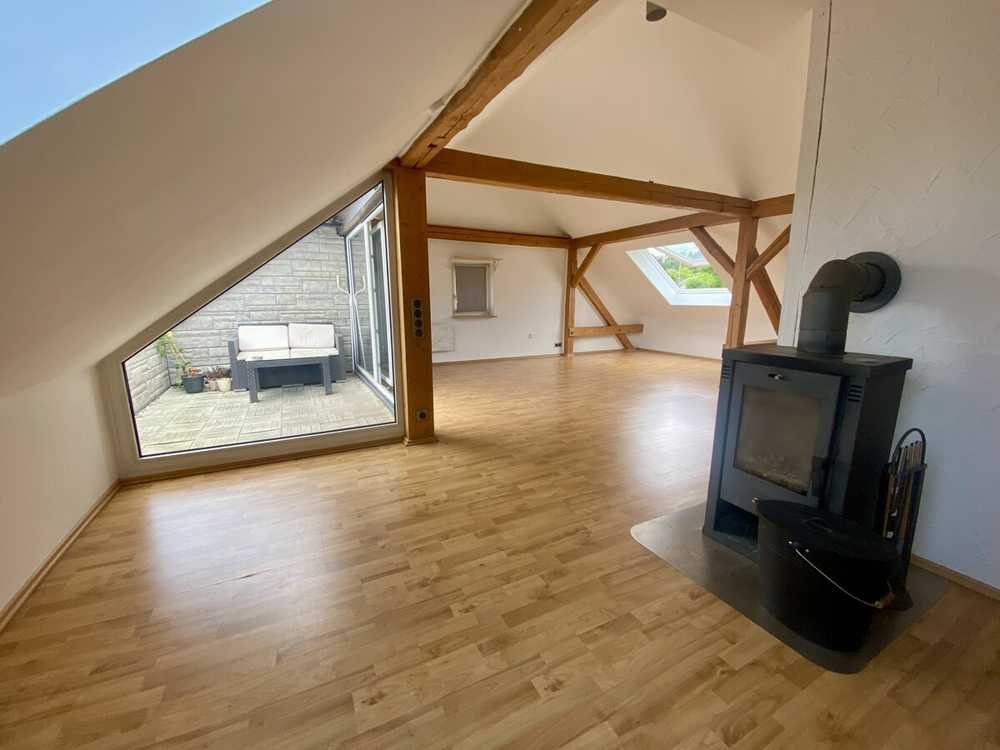 Das Highlight ist die erst kürzlich renovierte und fertig gestellte Dachloggia (2022) mit großen Schiebe-Fensterelementen und einem herrlichen Ausblick auf das Umland.