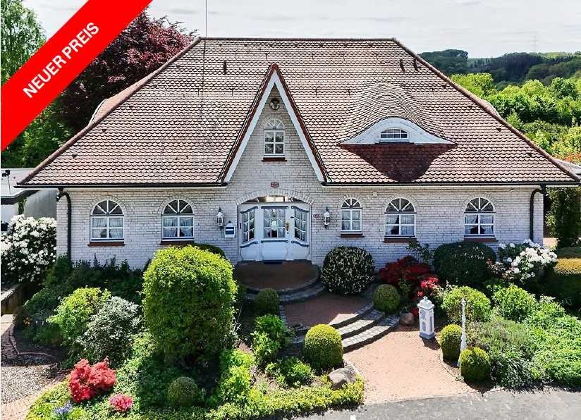 Dieses besondere Anwesen in einem malerischen Ortsteil von Soest-Ense, präsentiert sich auf einem großzügigen Grundstück, Weitblick inklusive. Bereits beim Betreten des Grundstücks fällt der äußerst ansprechende Vorgarten sofort ins Auge. Die Architektur des Hauses erinnert an einen Sylter Baustil. In einem beschaulichen Ort wie diesen muss aber nicht auf das Wasser verzichtet werden. So befindet sich der Möhnesee in nur ca. 4 km Entfernung. Entlang der Steintreppe betritt man den Hauseingang und wird sofort von dem offenen Wohnkonzept empfangen. Helle Wände, Stuck und ein unvergänglicher Travertin Boden zieren den Eingangsbereich. Bei der Planung und finalen Umsetzung dieses Anwesens wurde neben der großzügigen Planung der Räume auch auf kurze Wege gesetzt. Das Gäste-WC befindet sich in unmittelbarer Nähe zum Hauseingang. Die Kombination aus bunt verzierten Fliesen und goldfarbenen Armaturen unterstreichen den Charakter des Hauses ohne kitschig zu wirken. Der Wohnbereich des Hauses wird durch die großen Fensterfronten und der offenen Bauweise stets mit ausreichend Tageslicht versorgt. Entlang der drei Treppenstufen befindet sich das Wohnzimmer welches fließend ins Esszimmer übergeht. Mittig platzieren sich die großflächigen Schiebetüren die den Blick auf den wunderschönen Garten freigeben. Ebenfalls von einer tollen Blickachse profitiert das Esszimmer. Der fließende Übergang zur Küche stellt sich gerade beim Ausrichten von Empfängen und dem bewirten von Gästen als überaus nützlich heraus. Die großzügige offene Einbauküche bietet viele nützliche Verstaumöglichkeiten.