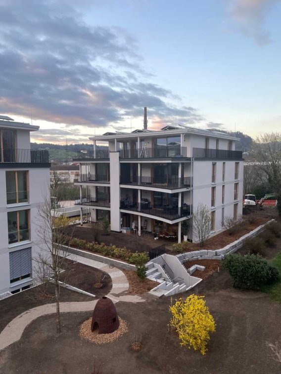 15 Wohnungen, auf zwei Gebäude verteilt, blicken ins Grüne, teilweise auf die Burg Rötteln und auf den Garten mit Kinderspielplatz, unter dem sich die Tiefgarage verbirgt.