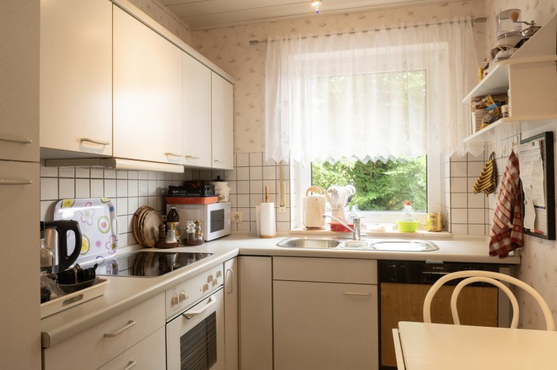 Einbauschrank im Flur, großer Einbauschrank im Schlafzimmer (im Kaufpreis inkl.). TG-Stellplatz, Kellerraum. Rolltor der Tiefgarage mit Fernbedienung.
