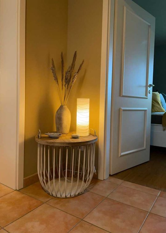 Die derzeit als Ferienwohnung genutzte Wohnung verfügt über ein Wohnzimmer mit Esstisch, ein Duschbad, eine Küche, 2 Schlafzimmer und einen Abstellraum so wie eine großzügige teils überdachte und nicht einsehbare Terrasse. Direkt vor der Tür befindet sich ein PKW-Stellplatz.