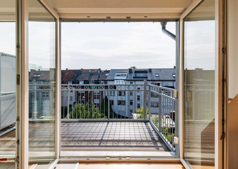 Diese modern gestaltete Dachgeschosswohnung überzeugt durch ihre offene Architektur, doppelter Raumhöhe und vielseitig nutzbarer Wohn- und Nutzfläche. Herzstück ist der großzügige Wohn- und Essbereich mit Luftraum und Zugang zum Balkon mit Blick über das Kreuzviertel. Das separate Schlafzimmer mit großer Gaube sowie ein weiterer, großzügiger Raum auf der Galerieebene bieten individuelle Gestaltungsmöglichkeiten – ob zweites Schlafzimmer, Homeoffice oder Atelier. Die zeitlose Einbauküche fügt sich harmonisch in das moderne Wohnkonzept ein. Das Tageslicht-Bad mit elektrischen Dachfenstern und großer Dusche bietet besonderen Komfort.