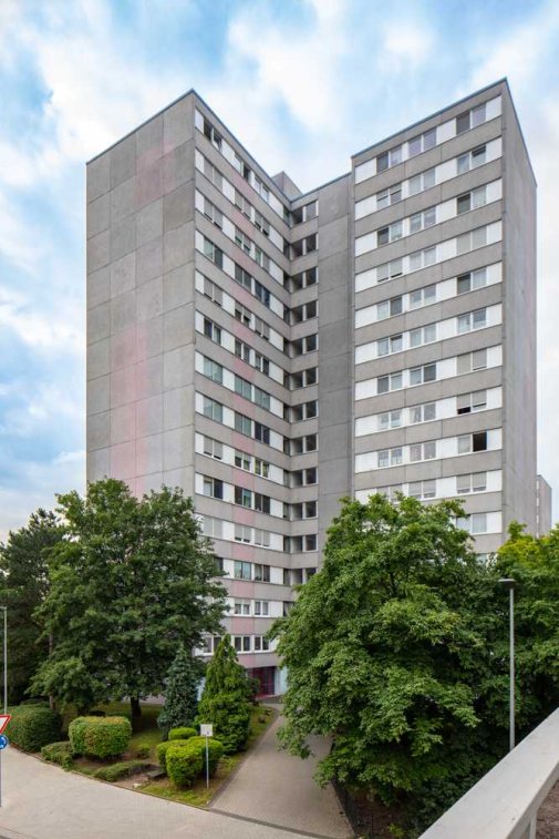 Das gepflegte Mehrfamilienhaus in der ruhigen Lage der Pfingstweide fügt sich