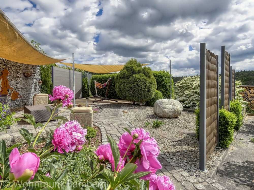 Der gepflegte Innenhof mit drei Stellplätzen, Gartenlaube, Pizzaofen, Gewächshaus und Loungebereich unter Sonnensegeln rundet das Außenkonzept ab. Der angrenzende Gemüsegarten lässt sich bei Bedarf zur Grünfläche umgestalten.