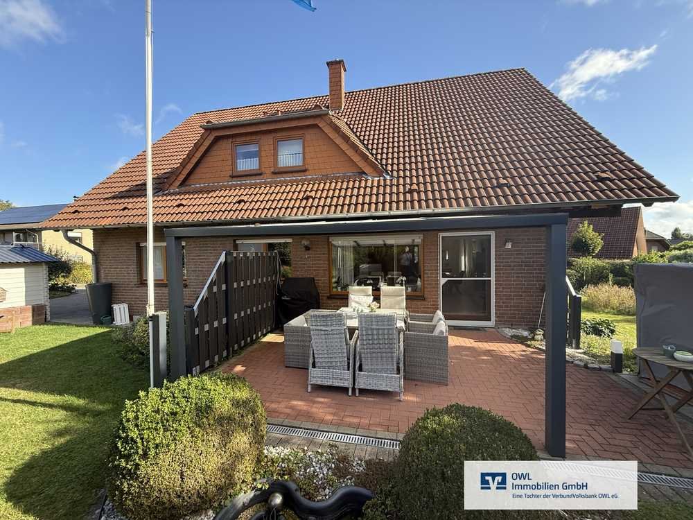 Hier präsentieren wir Ihnen ein attraktives Zweifamilienhaus (2 Eigentumswohnungen) in bevorzugter Wohnlage von Werther. Die Immobilie wurde 1992 mit Vollkeller und Verklinkerung auf einem 815 m² großem Erbbaugrundstück erbaut, mit einem aktuellen Erbbauzins von 4.180 € im Jahr. Die Wohnung im Erdgeschoß umfasst 95,15 m² und besteht aus einem Wohn-/Esszimmer mit Zugang zur überdachten Terrasse, drei Schlafzimmern, einer Küche, einem 2016 modernisierten barrierefreien Bad sowie einem Gäste-WC und Abstellraum. Die Obergeschosswohnung verfügt über 79,14 m² und besteht aus einem Wohnzimmer mit Zugang zum Balkon, einem Schlafzimmer, einem weiteren Zimmer, einer Küche und einem Bad. Der geräumige Vollkeller bietet zudem zwei wohnlich ausgebaute Räume. Ein "Highlight" des Hauses ist u.a. der sehr schön angelegte Garten mit Gartenhütte und der gepflegte Gesamtzustand. Zudem bietet die Immobilie drei Pkw-Stellplätze, Sat-TV u.v.m. Die Immobilie wird nach Absprache frei übergeben, könnte auch als attraktive Kapitalanlage dienen.