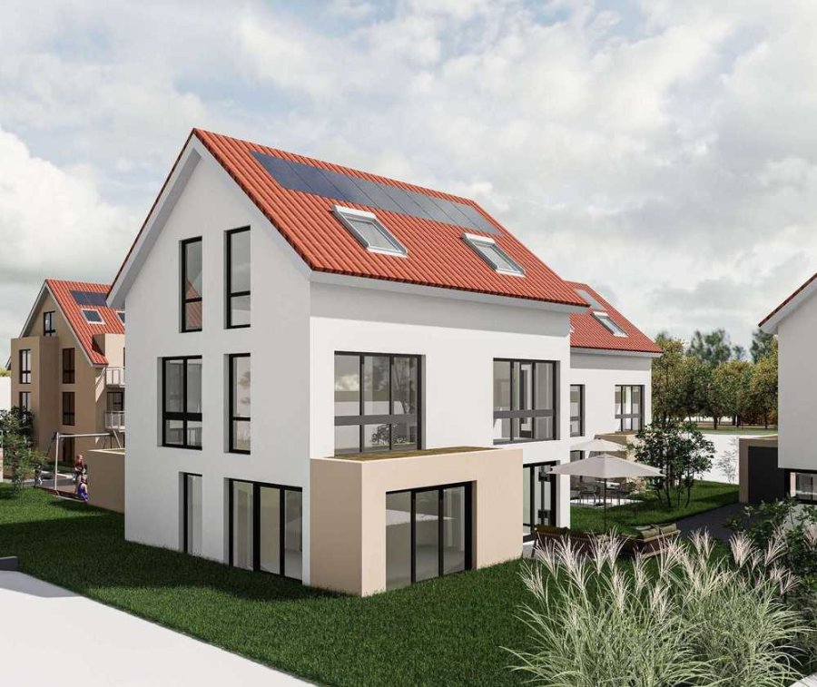 Modernes, helles Erdgeschoss: Ein großzügiger Flur mit viel Platz für Garderobe empfängt Sie. Im Eingangsbereich liegt auch das Gäste WC. Der offene Wohn- und Essbereich beeindruckt durch bodentiefe Fenster, tolle Südterrasse mit direktem Zugang 132qm großen Garten, der Ihren Wohnraum erweitert — perfekt zum Entspannen und Genießen.