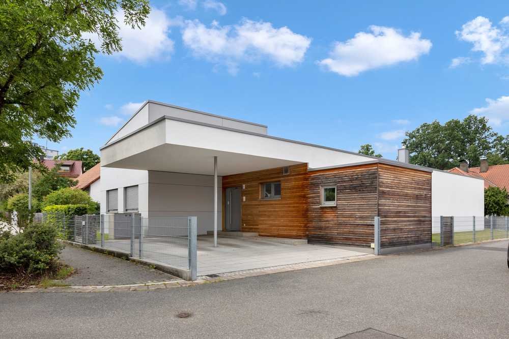 Technisch erfüllt die Immobilie alle Anforderungen an modernes und energieeffizientes Wohnen. Eine zentrale Wohnraumbelüftung sorgt für ein stets angenehmes Raumklima. Lautsprecher wurden dezent im Boden versenkt, Leerrohre vom Heizungsraum bis ins Dachgeschoss ermöglichen eine spätere Nachrüstung mit Photovoltaik oder Solarthermie. Eine Wallbox für E-Mobilität ist ebenfalls vorhanden. Das Haus wurde aus 36,5 Zentimeter starken Üton-Ziegeln errichtet, verzichtet vollständig auf zusätzliche Wärmedämmung und erfüllt dennoch den energieeffizienten KfW-55-Standard. Beheizt wird das Haus mit einer effizienten Wärmepumpe. Die Fassade kombiniert wetterbeständige HPL-Platten mit Putzflächen und stilvollen Holzelementen. Das hochwertig ausgeführte Stehfalzdach wurde von einem regionalen Fachbetrieb realisiert und rundet das architektonische Gesamtbild ab.