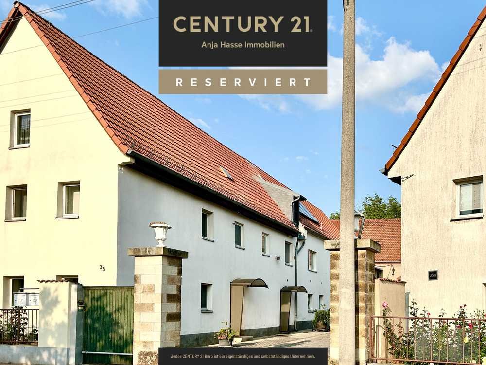 Auf dem Grundstück stehen bereits eine Scheune, ein Auszugshaus und das Haupthaus, das in zwei Hälften geteilt ist. Die im Jahr 1903 erbaute Doppelhaushälfte liegt straßenseitig auf dem Dreiseitenhof und hat aktuell eine Wohnfläche von ca. 138 m². Zudem steht das Objekt unter Denkmalschutz.
