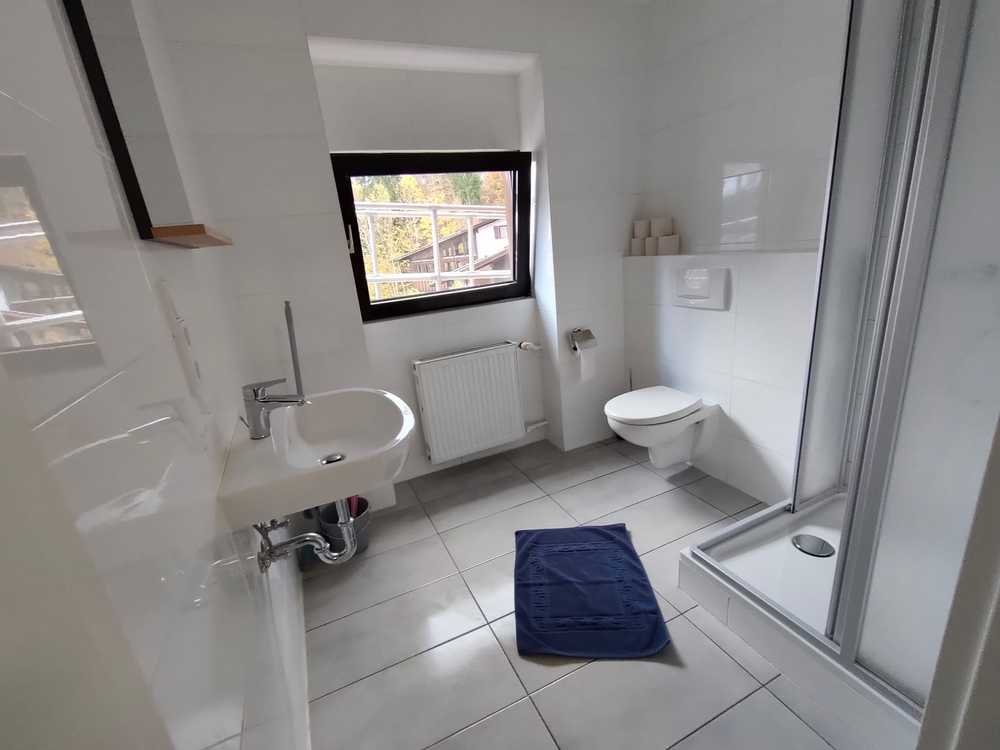 Das kompakte Badezimmer ist freundlich gestaltet und bietet ausreichend Platz für individuelle Einrichtungsideen. Das Schlafzimmer überzeugt durch seine Helligkeit und flexible Gestaltungsmöglichkeiten.